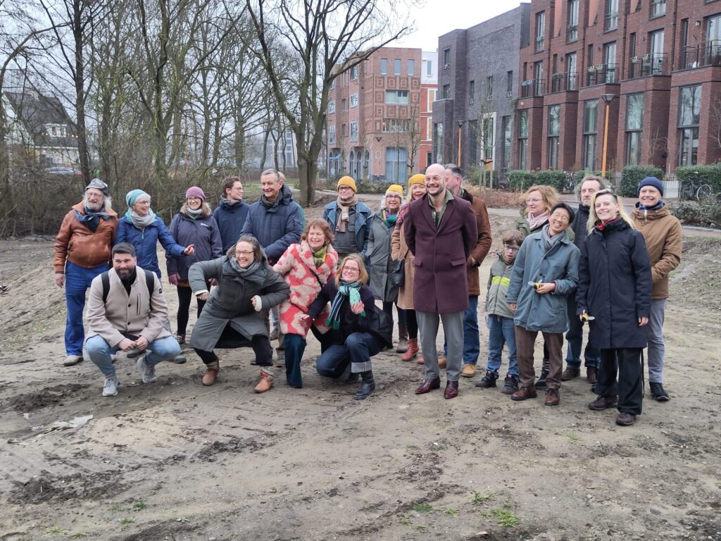 Vanmiddag verzamelden de wooncoöperaties die hadden meegedaan aan de tender zich bij de kavel. Daar sprak wethouder Dennis de Vries over het belang van wooncoöperaties voor de stad en gingen we op de foto. Uiteraard feliciteerden we de Hommeldorpers van harte met hun overwinning. Het is een mooie stap voor de Utrechtse wooncoöperaties. Voor ons is nu het wachten op de volgende tender die de gemeente uitschrijft. Eens wordt onze woondroom werkelijkheid!